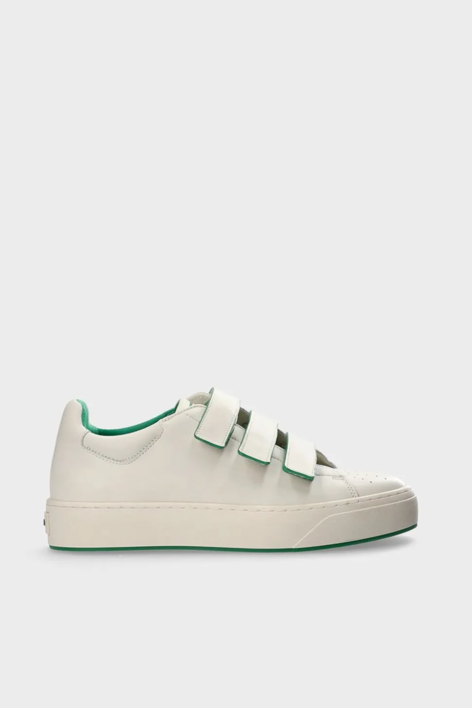 In Wit En Groen. Lage Sneakers Gemaakt Van Zacht, Glad Leer. Retrosilhouet. Klittenbandsluiting. Geborduurde Details En Kantpatroon. Branding Op De Tong Van De Schoen. Ronde Dop. Rubberen Zool Met Spatbord En Logo Op De Achterkant. Kleurcontrasterende Elementen En Interieur. Een Retrostijl Met Verfijnde Details.Onze Schoenen Zijn Ontworpen In Kopenhagen En Gemaakt In Europa. Het Leer Is Afkomstig Van Geselecteerde Familiefabrieken In Italië