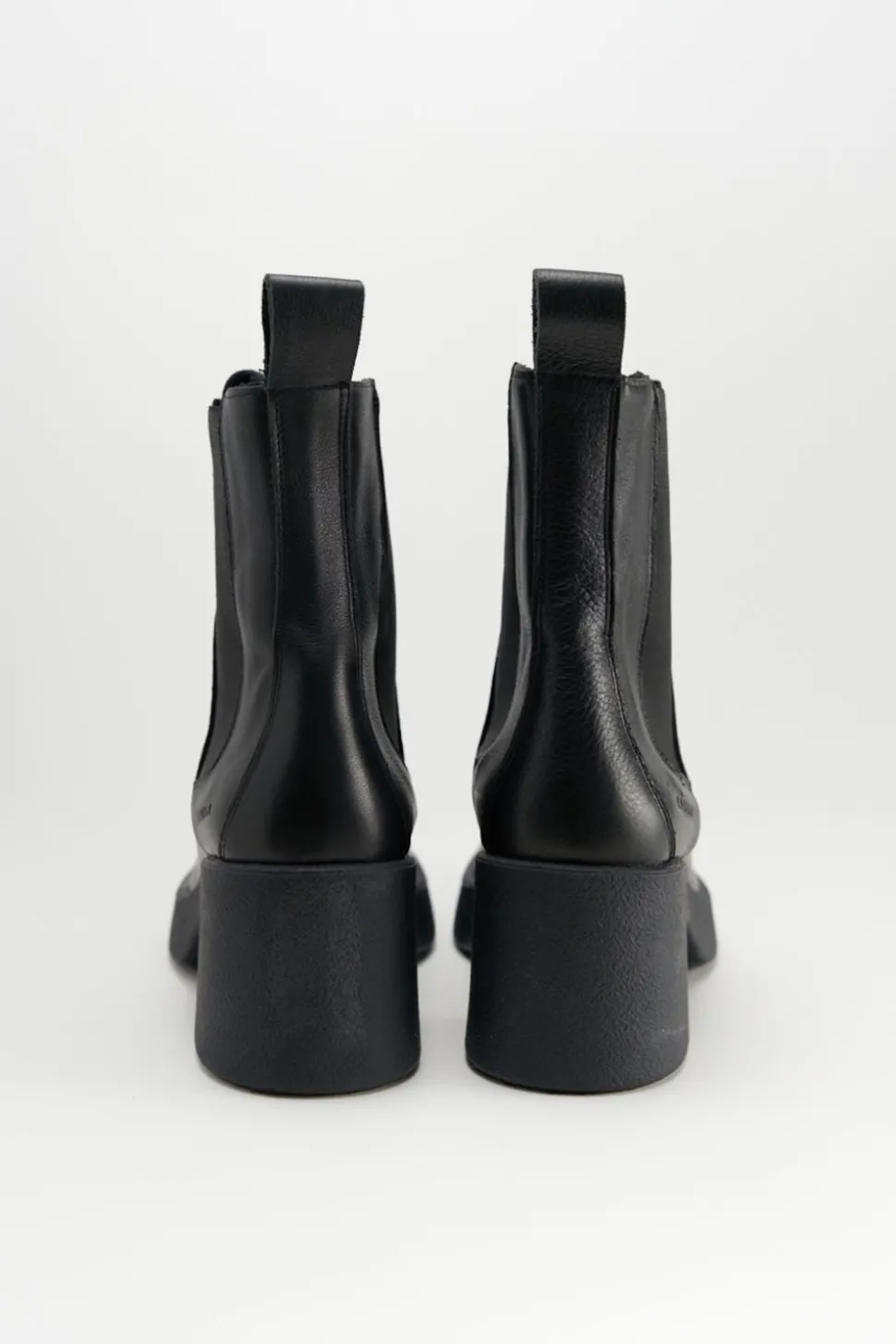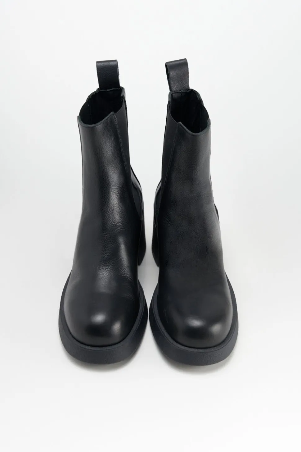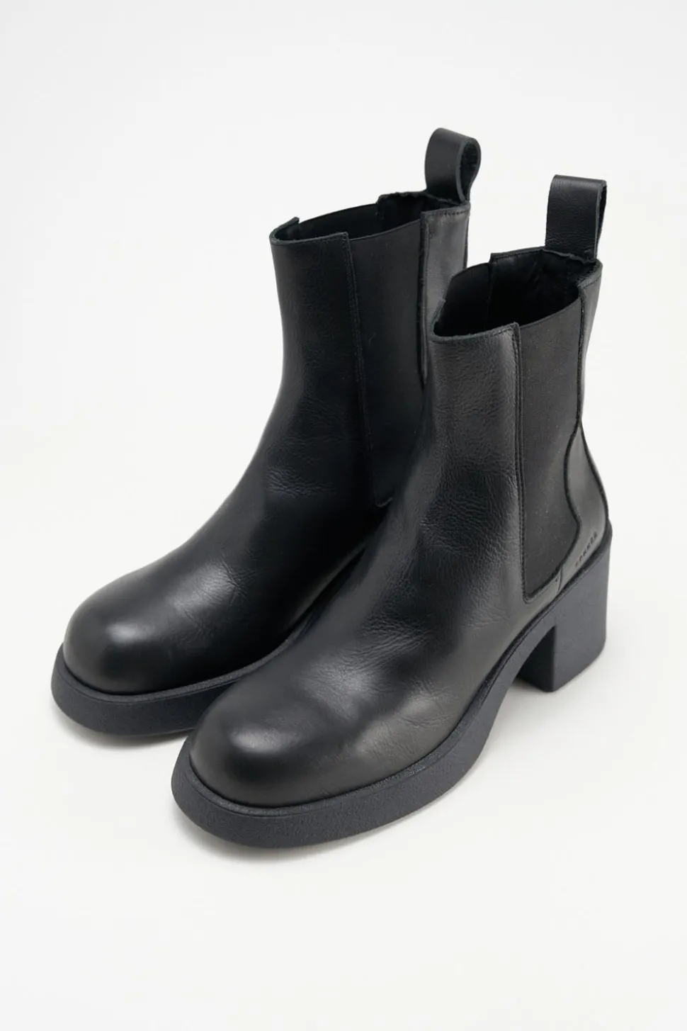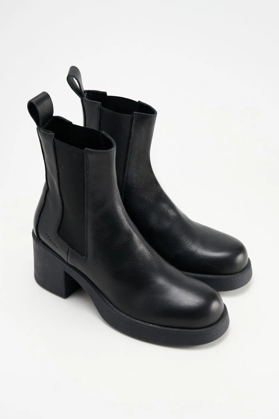 In Het Zwart. Enkellaarzen Van Glad Leer Met Blokhak. Trek Stijl Aan. Trek Het Lusje Aan De Hiel. Elastische Inzetstukken. Subtiele Branding Aan De Buitenkant. Afgerond Teengedeelte. Opvallend En Minimalistisch, Altijd En Overal.Onze Schoenen Zijn Ontworpen In Kopenhagen En Gemaakt In Europa. Het Leer Komt Uit Geselecteerde Familiebedrijven In Italië.