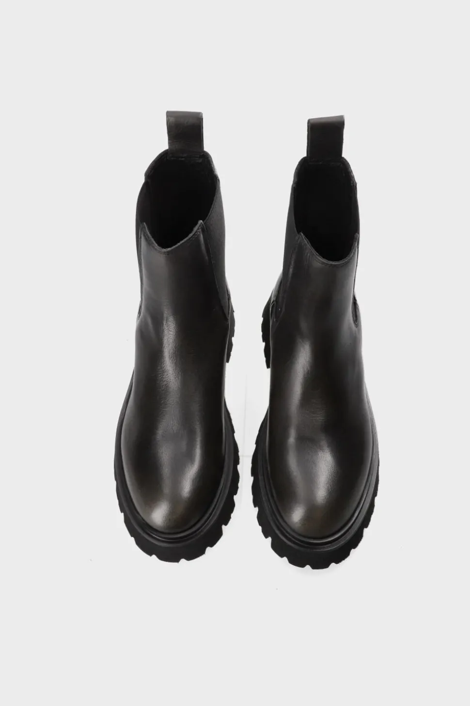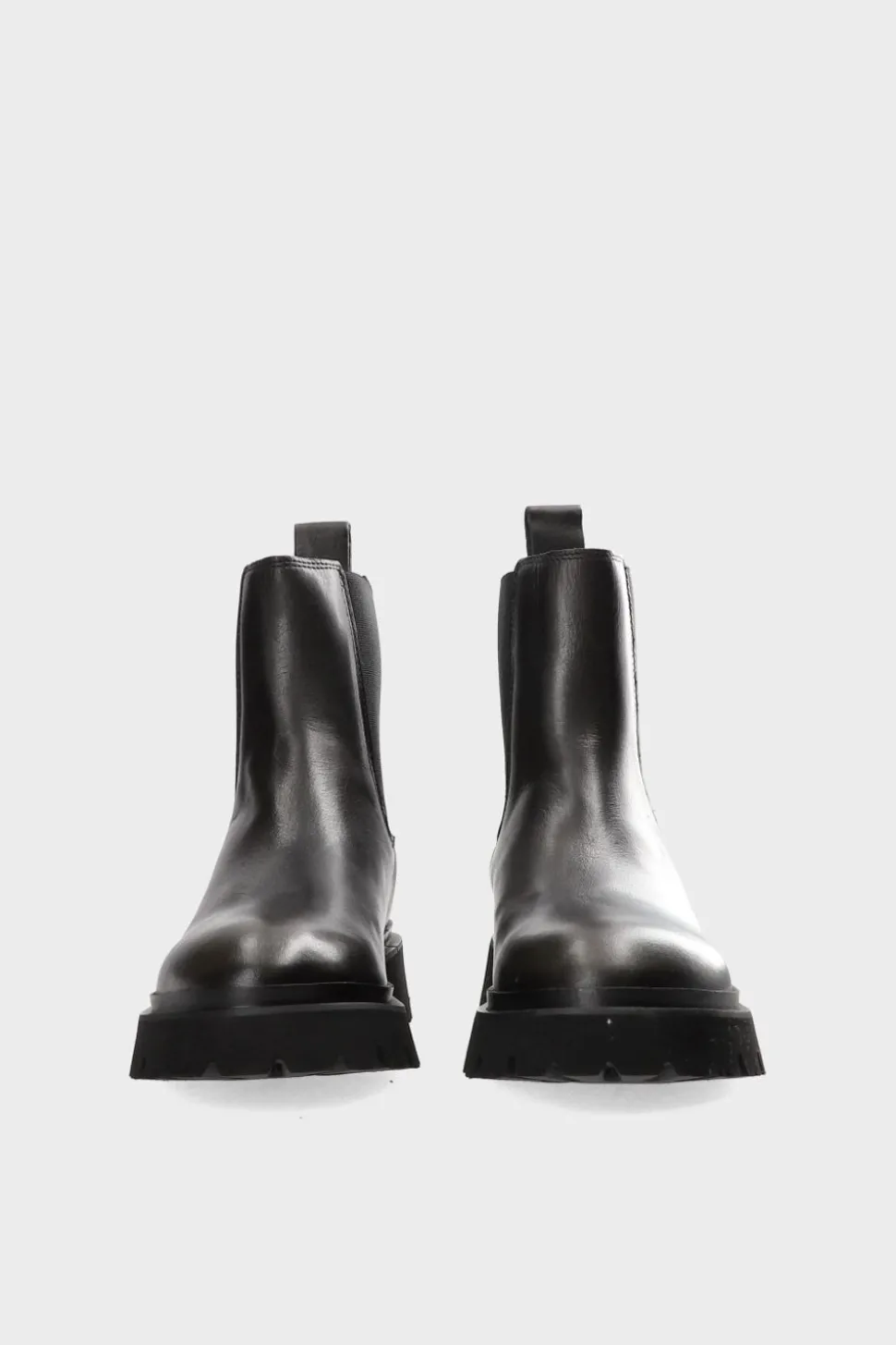 In Gebroken Zwart. Halfhoge Chelsea Boots Gemaakt Van Glad Leer Met Een Vintage Look. Elastische Zijpanelen. Trek De Lus Aan De Schacht. Logo Aan De Buitenkant. Rubberen Zool Met Spatbord. Vintage Chelsea Boots Met Opvallende Elementen.Onze Schoenen Zijn Ontworpen In Kopenhagen En Gemaakt In Europa. Het Leer Komt Uit Geselecteerde, Door Een Familie Gerunde Fabrieken In Italië.