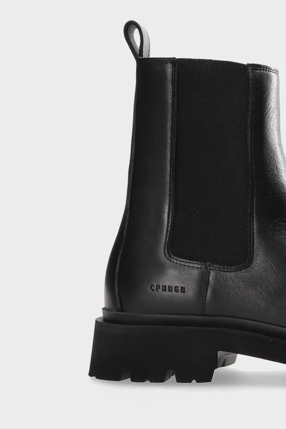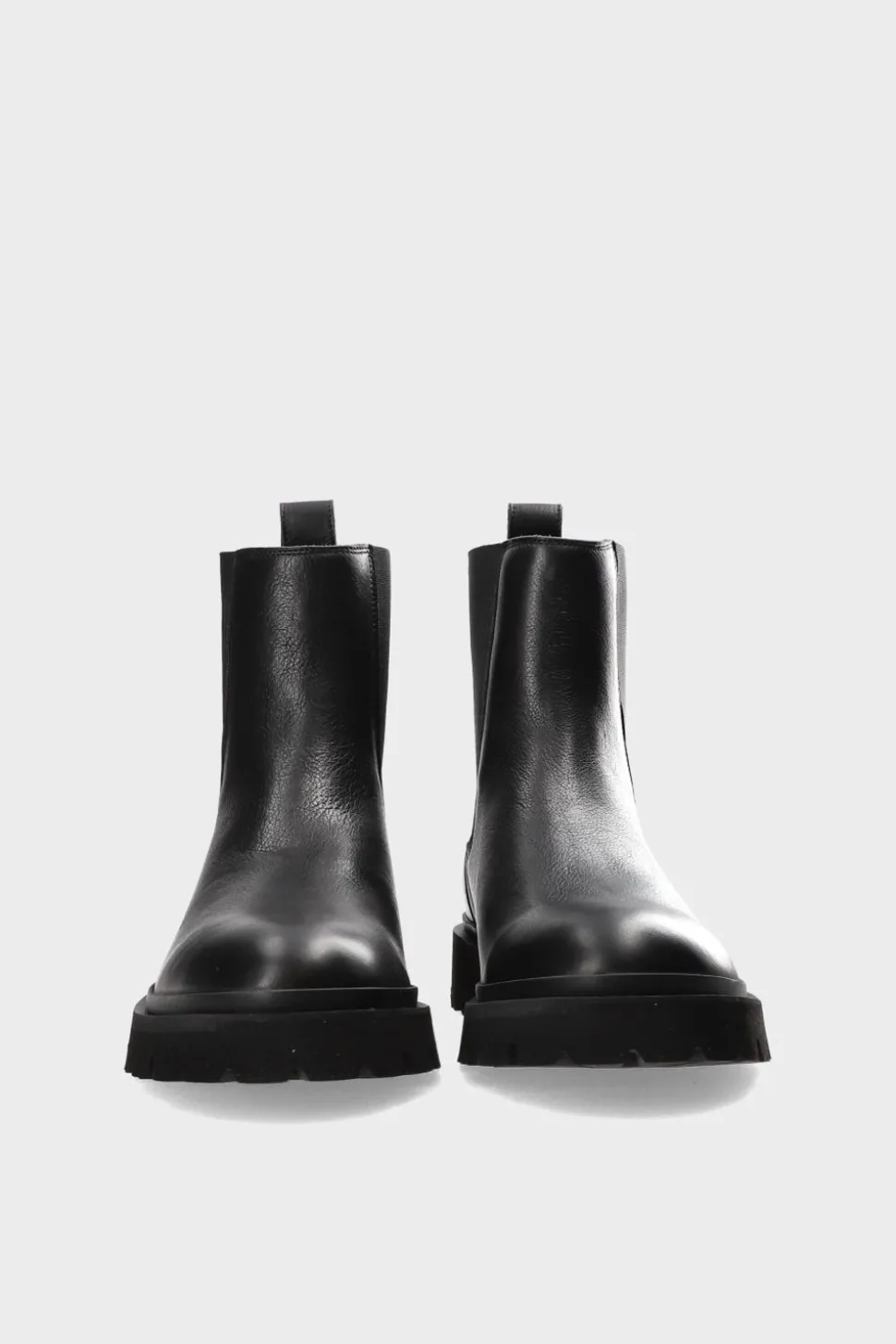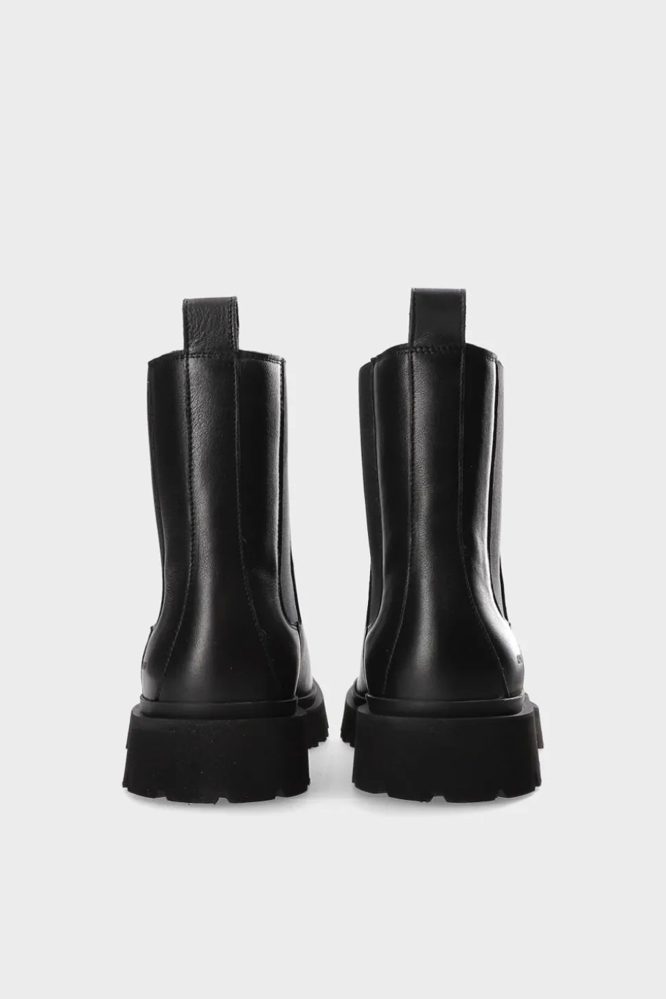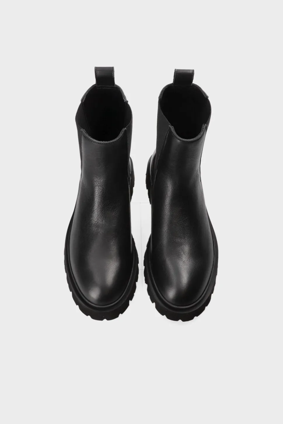 In Het Zwart. Enkelhoge Chelsea Boots Gemaakt Van Glad Leer. Minimalistisch Silhouet. Elastische Zijpanelen En Geborduurde Details. Trek Het Lusje Aan De Achterkant. Logo Aan De Buitenkant. Ronde Neus. Robuuste Rubberen Zool Met Grof Profiel, Blokhak En Spatbord. Chelsea-Laarzen Met Vintage Flair En Expressieve Elementen.Onze Schoenen Zijn Ontworpen In Kopenhagen En Gemaakt In Europa. Het Leer Is Afkomstig Van Geselecteerde, Door Een Familie Gerunde Fabrieken In Italië.