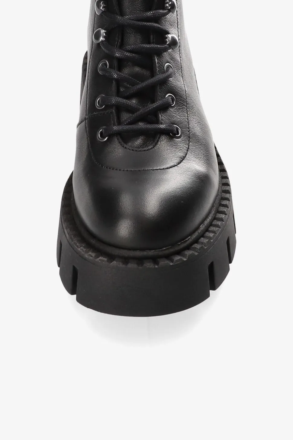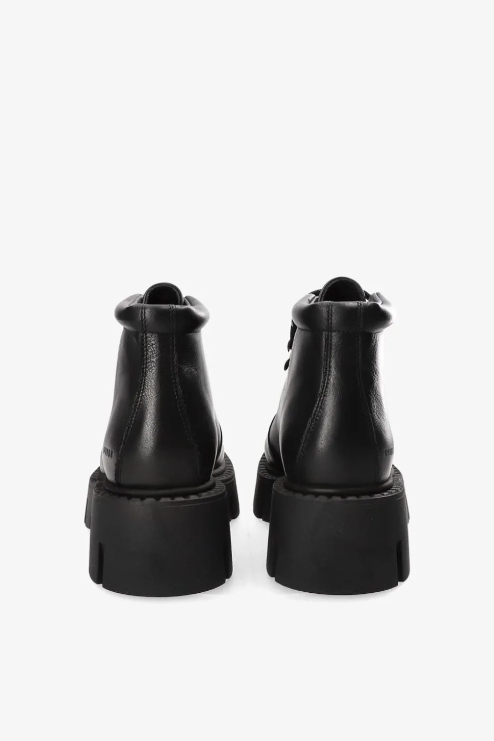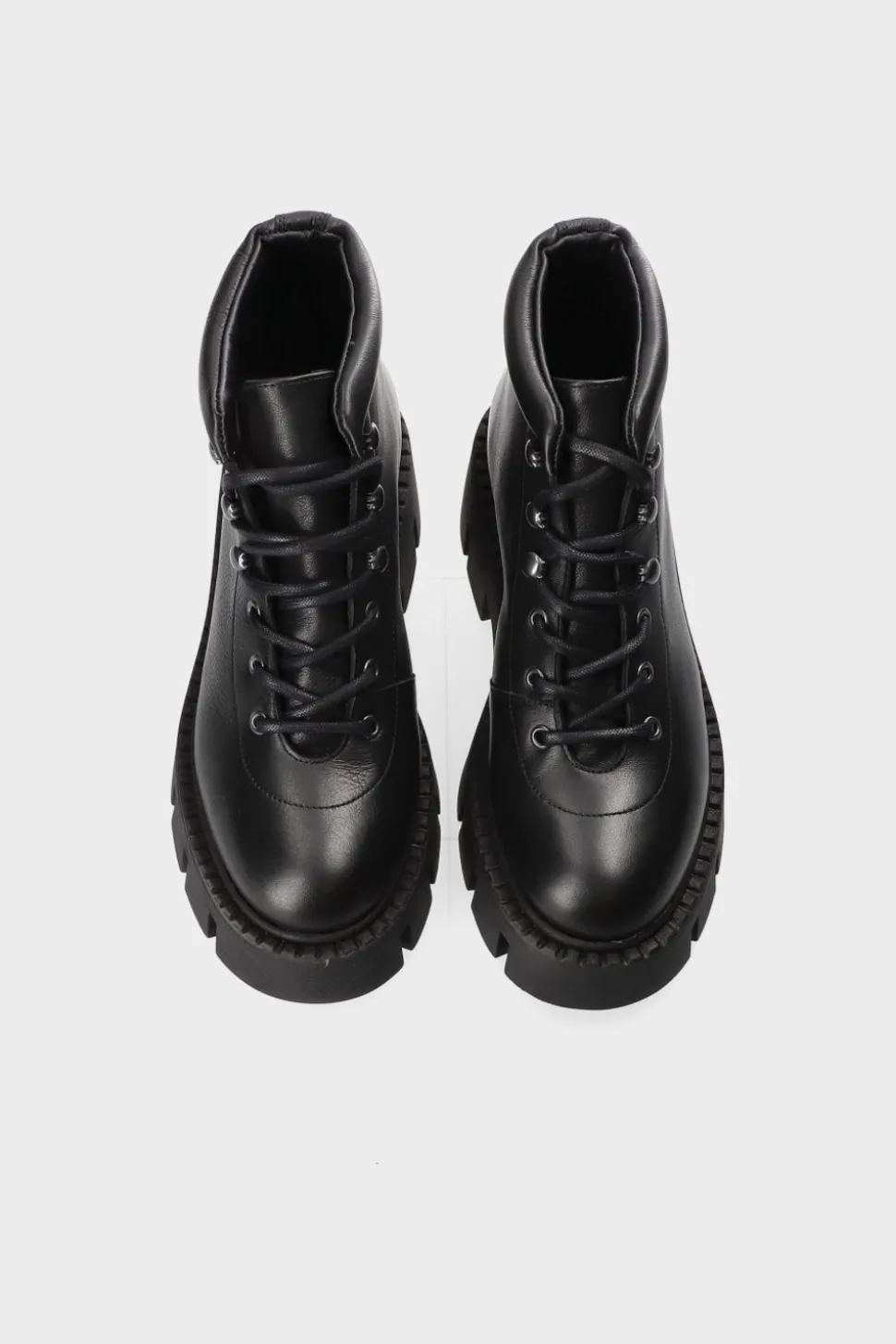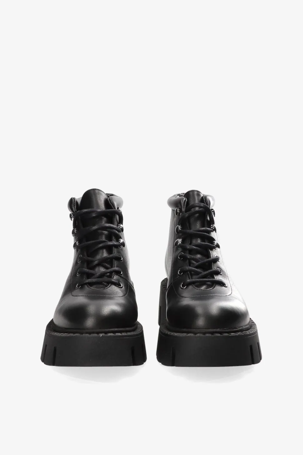 In Het Zwart. Enkelhoge Veterlaarzen Van Glad Leer. Grof Silhouet. Contrasterende Elementen Met Geborduurde Details. Vetersluiting Aan De Voorkant. Gevoerde Schacht. Ronde Neus. Robuuste Plateauzool Van Rubber Met Blokhak En Opvallend Profiel. Dikke Laarzen Voor Een Expressieve Look.Onze Schoenen Zijn Ontworpen In Kopenhagen En Gemaakt In Europa. Het Leer Komt Uit Geselecteerde Familiebedrijven In Italië.