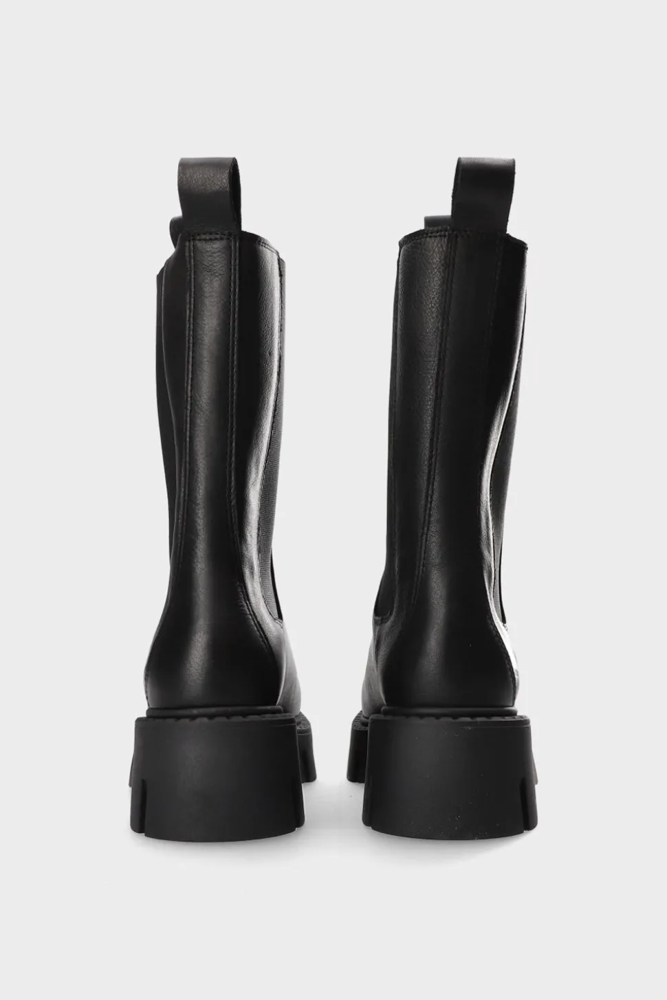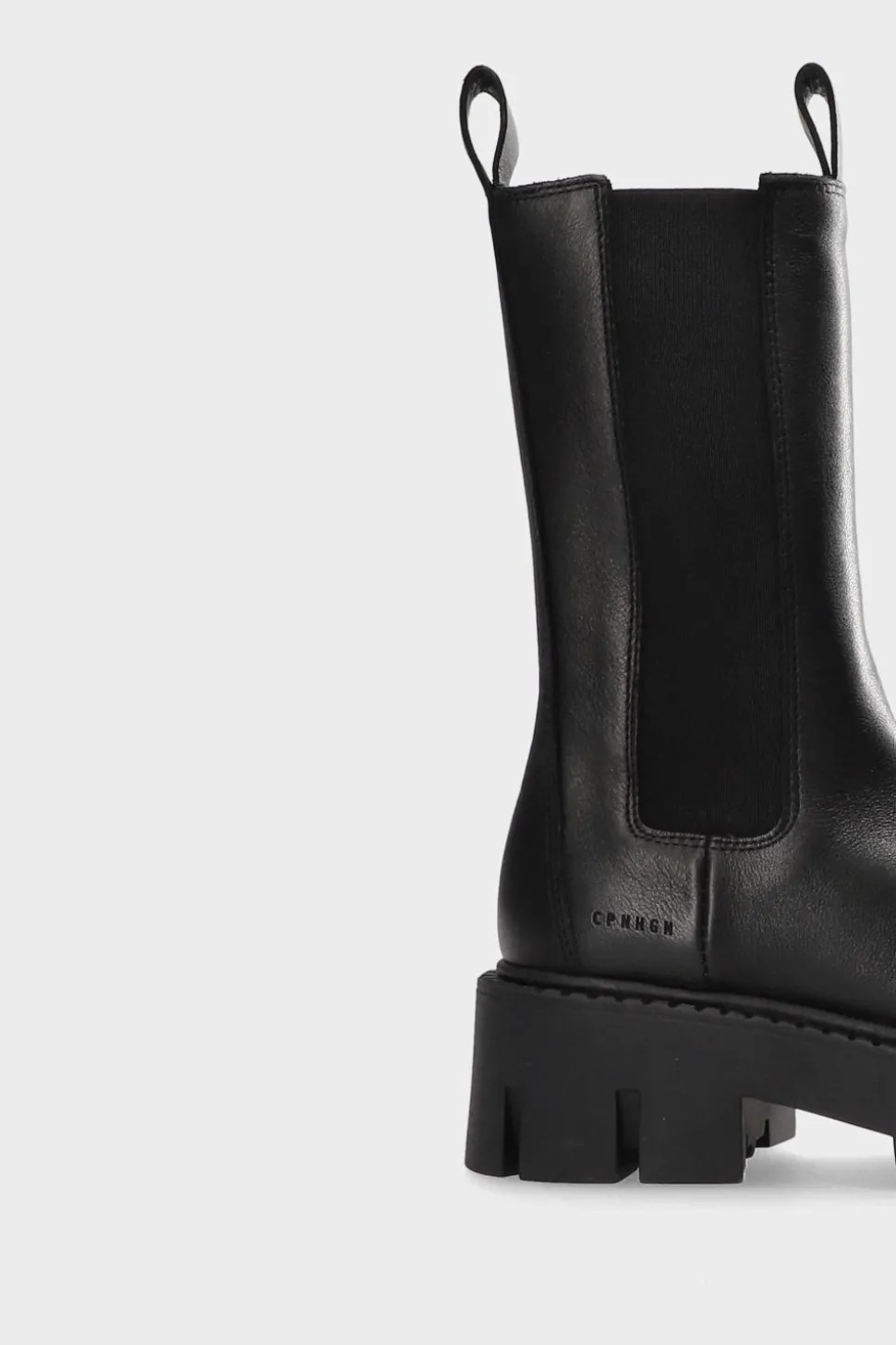 In Het Zwart. Hoge Chelsea Boots Gemaakt Van Glad Leer. Minimalistisch Silhouet Met Dikke Elementen. Elastische Zijpanelen. Geborduurde Details. Trek Lussen Aan De Schacht. Logo Aan De Buitenkant. Ronde Neus. Robuuste Plateauzool Van Rubber Met Blokhak En Opvallend Profiel. Clean Yet Chunky – Chelsea-Laarzen In Een Nieuw Ontwerp.Onze Schoenen Zijn Ontworpen In Kopenhagen En Gemaakt In Europa. Het Leer Is Afkomstig Van Geselecteerde, Door Een Familie Gerunde Fabrieken In Italië.