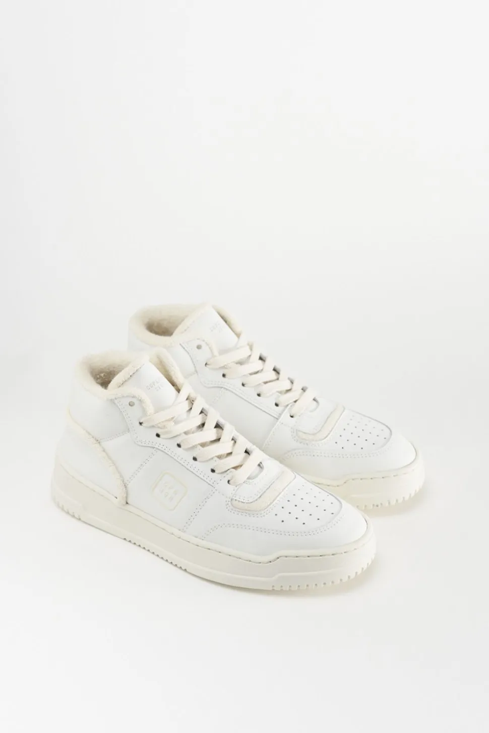 In Wit & Crème. Hoge Sneakers Gemaakt Van Glad Leer. Retrosilhouet. Gevoerde Schacht. Contrasterende Elementen Met Geborduurde Details En Kantpatronen. Logo-Statement In Reliëf Aan De Buitenkant. Vetersluiting Aan De Voorkant. Ronde Dop. Platte Gestructureerde Rubberen Zool. Een Expressieve Retrostijl Met Kleurrijke Accenten.Onze Schoenen Zijn Ontworpen In Kopenhagen En Vervaardigd In Europa. Het Leer Is Afkomstig Van Geselecteerde, Door Een Familie Gerunde Fabrieken In Italië.