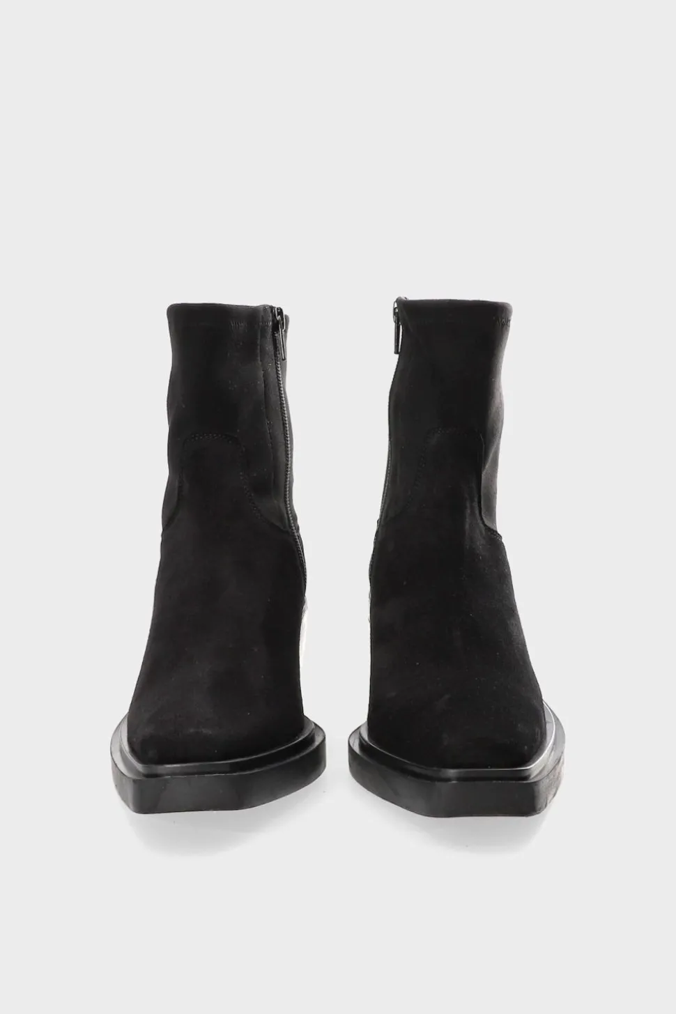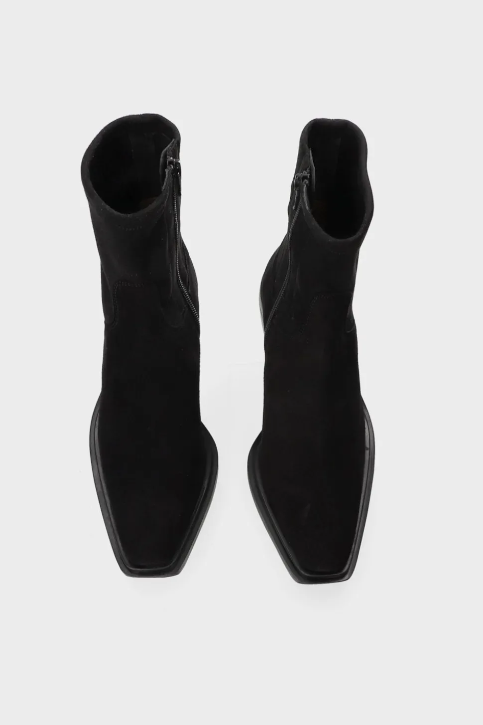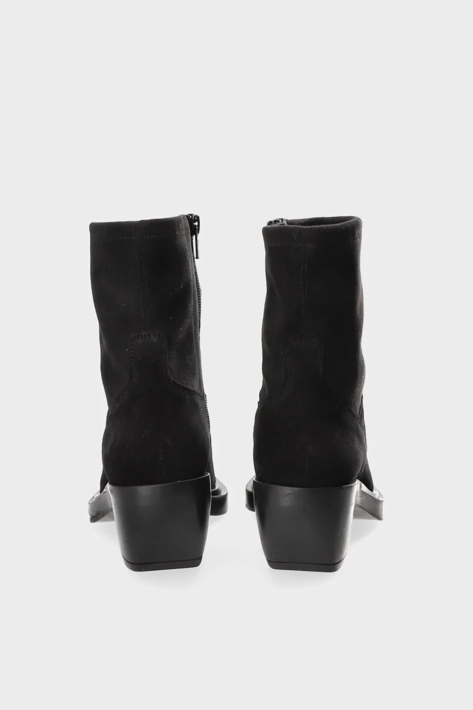 In Het Zwart. Enkelhoge Enkellaarzen Gemaakt Van Stretch Suède. Texano Boots Geïnspireerd Silhouet. Loszittende As. Afzonderlijke Elementen. Geborduurde Details. Rits Aan De Binnenkant. Rechthoekig Gevormd, Spitse Neus. Gladde Rubberen Zool Met Schuine Blokhak. Expressieve Texano-Enkellaarzen Met Een Fluweelachtige Afwerking.Onze Schoenen Zijn Ontworpen In Kopenhagen En Gemaakt In Europa. Het Leer Is Afkomstig Van Geselecteerde, Door Een Familie Gerunde Fabrieken In Italië.