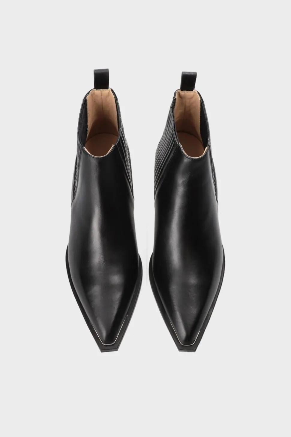 In Het Zwart. Lage Chelsea Boots Gemaakt Van Zacht, Glad Leer. Slank Silhouet. Smalle Schacht. Elastische Zijpanelen. Geborduurde Details. Trek Het Lusje Aan De Achterkant. Rechthoekige, Spitse Neus Met Zilverkleurig Detail. Gladde Rubberen Zool Met Schuine Blokhak. Minimalistische Chelsea-Laarzen In Texano-Stijl.Onze Schoenen Zijn Ontworpen In Kopenhagen En Gemaakt In Europa. Het Leer Is Afkomstig Van Geselecteerde, Door Een Familie Gerunde Fabrieken In Italië.