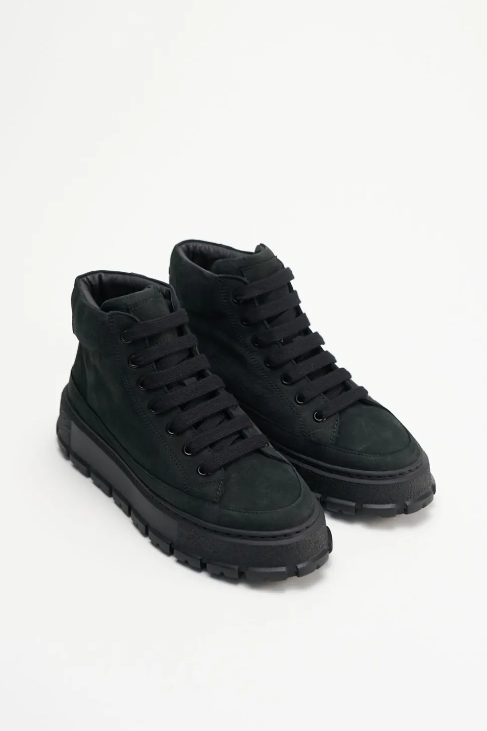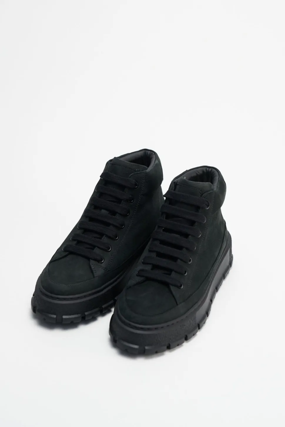 In Het Zwart. Hoge Sneakers Gemaakt Van Zacht Nubuckleer. Een Silhouet Geïnspireerd Op Wandelschoenen. Met Geborduurde Details En Tonale Veters. Gewatteerde Schacht Met Logo. Etiket Op De Tong. Een Minimalistische Look Voor Stadswandelingen.Onze Schoenen Zijn Ontworpen In Kopenhagen En Vervaardigd In Europa. Het Leer Komt Uit Geselecteerde, Door Een Familie Gerunde Fabrieken In Italië.