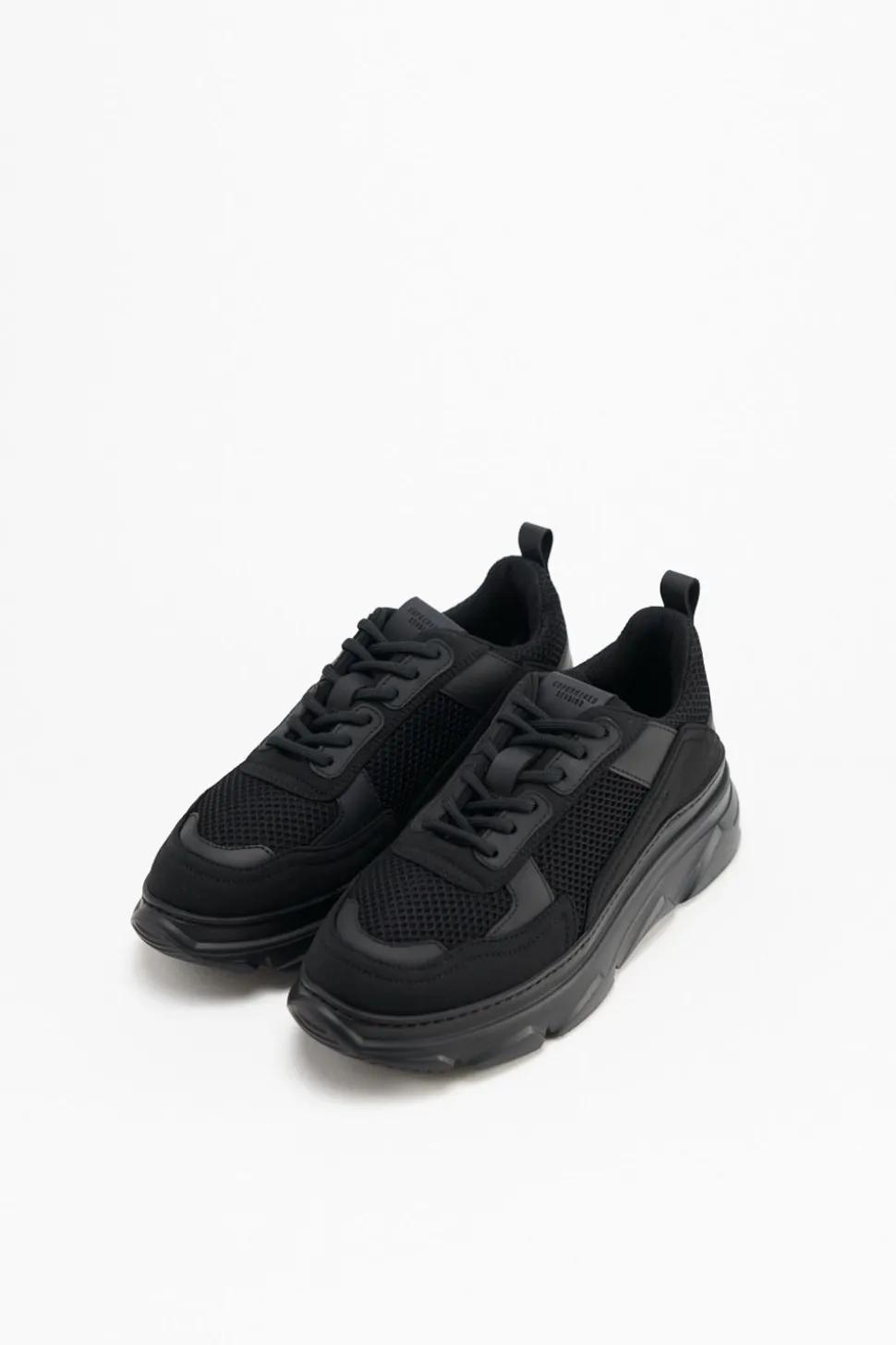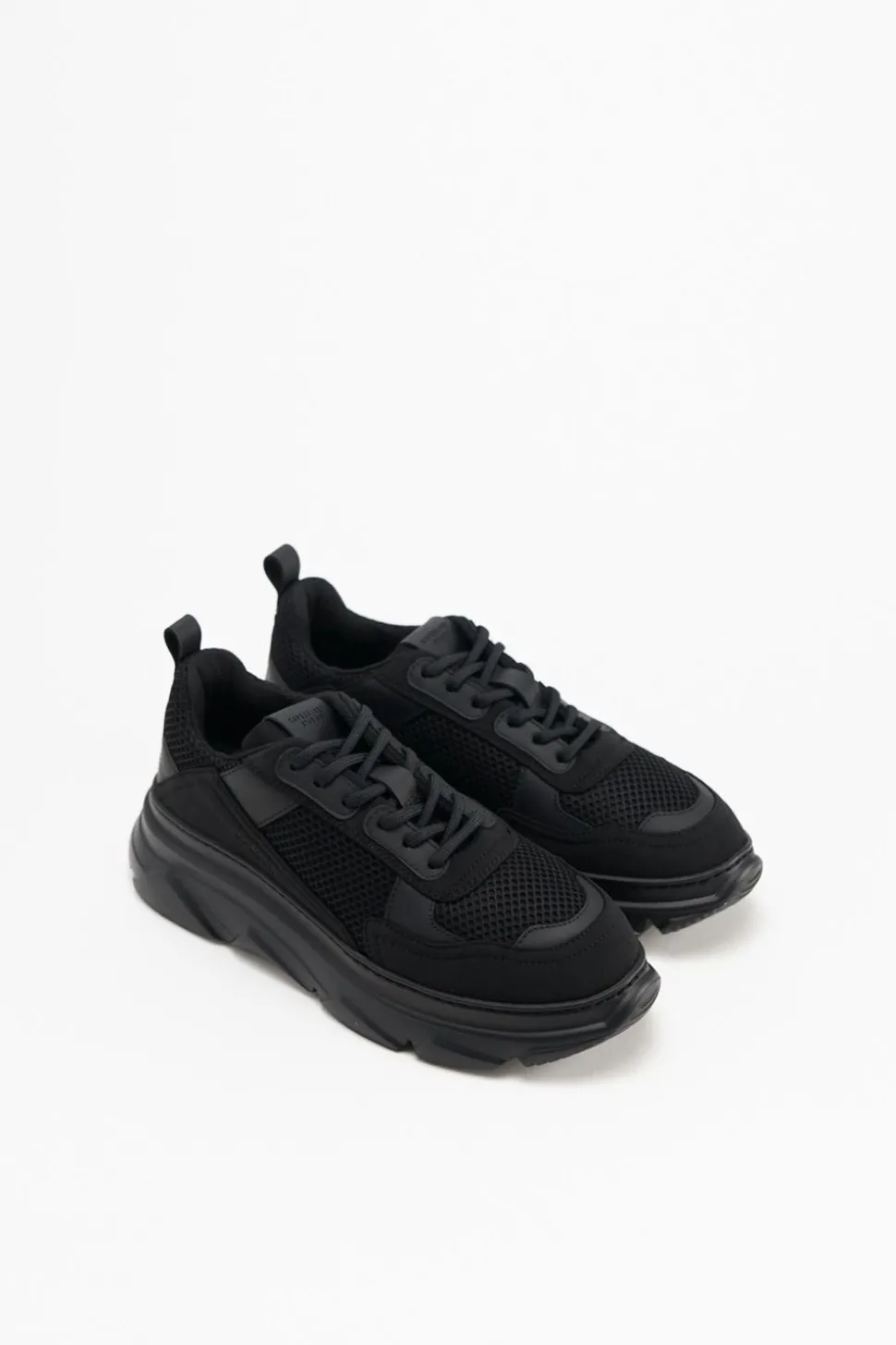 In Het Zwart. Lage Sneakers Gemaakt Van Een Mix Van Mesh En Leer. Grof Silhouet. Contrasterende Elementen Met Geborduurde Details. Vetersluiting Aan De Voorkant. Logopatch Op De Tong. Subtiele Branding Aan De Buitenkant. Trek Het Lusje Aan De Achterkant. Ronde Dop. Dikke Platformzool Met Geometrische Details. Onze Iconische Sneakers In Een Nieuwe Look.Onze Schoenen Zijn Ontworpen In Kopenhagen En Gemaakt In Europa.