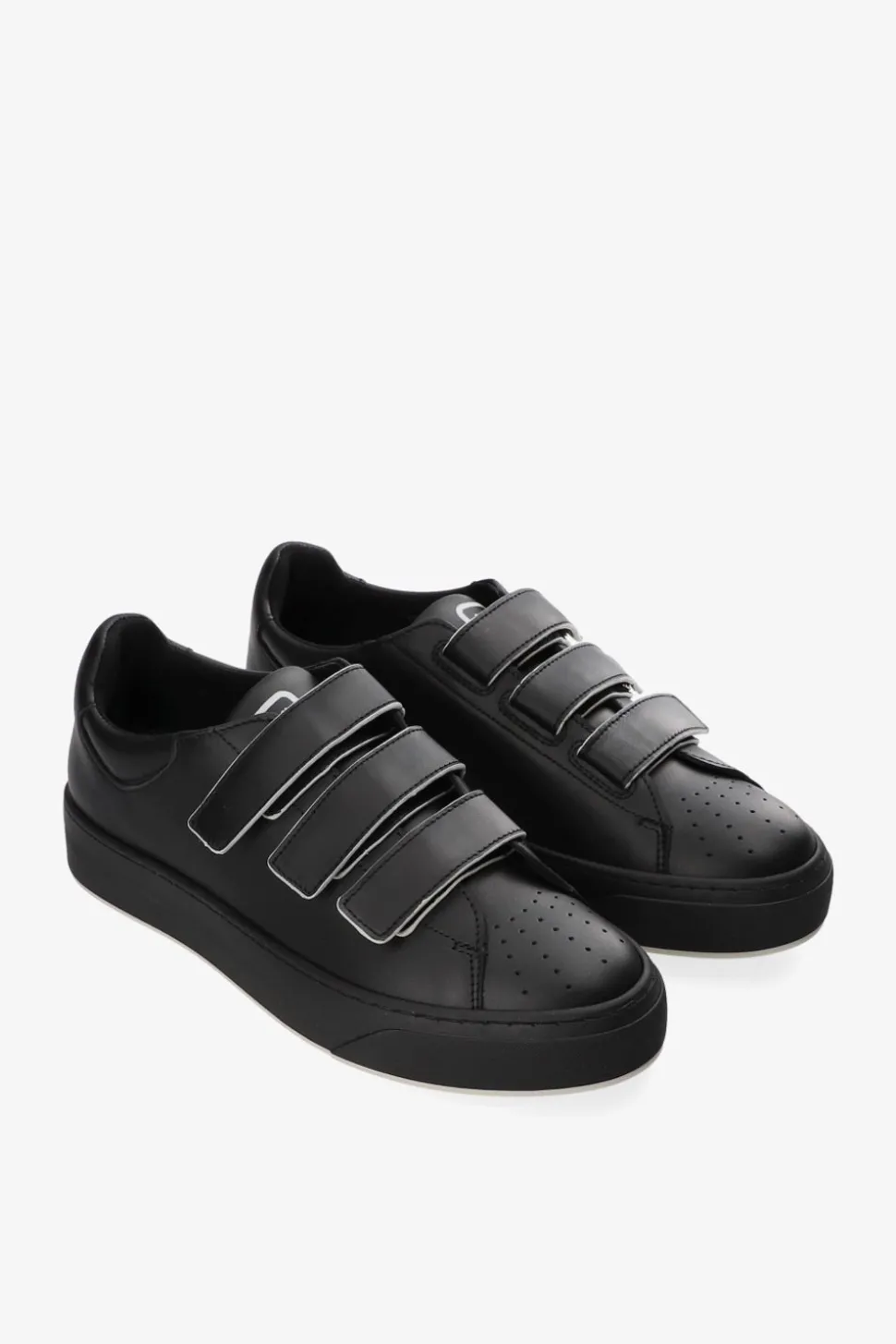 In Het Zwart. Lage Sneakers Gemaakt Van Zacht, Glad Leer. Retrosilhouet. Klittenbandsluiting. Geborduurde Details En Kantpatroon. Branding Op De Tong Van De Schoen. Ronde Dop. Rubberen Zool In Dezelfde Kleur Met Spatbord En Logo Op De Achterkant. Een Retrostijl Met Verfijnde Details.Onze Schoenen Zijn Ontworpen In Kopenhagen En Vervaardigd In Europa. Het Leer Is Afkomstig Van Geselecteerde Familiefabrieken In Italië