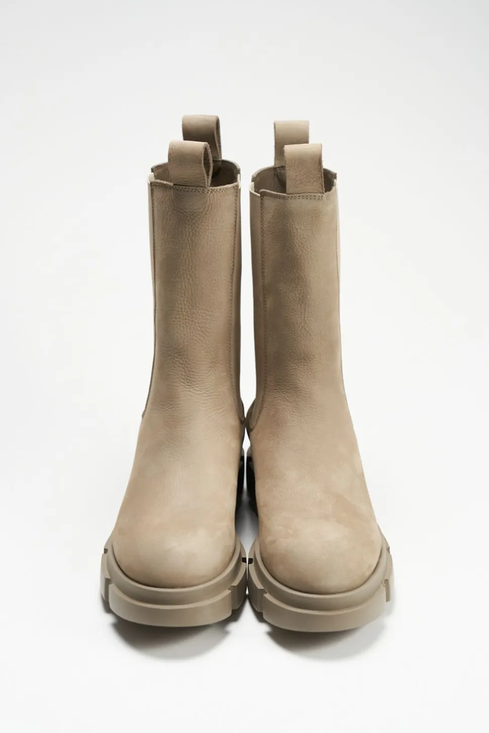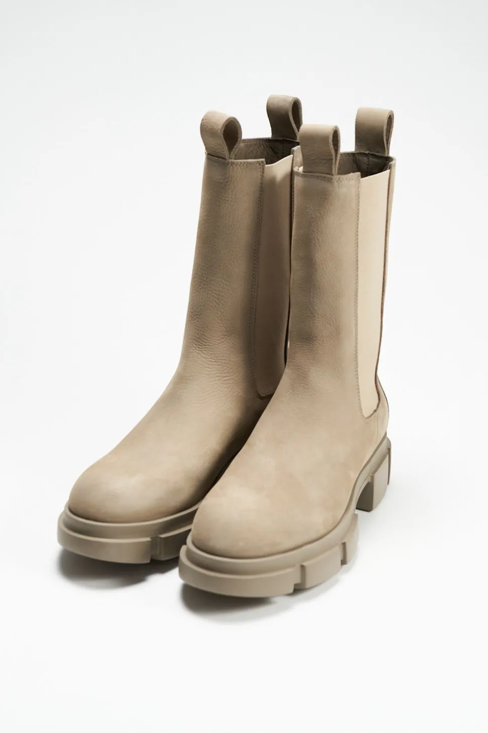 In Steen. Middenhoge Chelsea Boots Gemaakt Van Zacht Nubuckleer. Langwerpig Chelsea-Silhouet. Ronde Dop. Elastische Inzetstukken. Twee Treklussen Op De Schacht. Goudkleurig Logo Aan De Buitenkant. Onze Iconische Chelsea-Laarzen In Nieuwe Tinten.Onze Schoenen Zijn Ontworpen In Kopenhagen En Gemaakt In Europa. Het Leer Is Afkomstig Van Geselecteerde, Door Een Familie Gerunde Fabrieken In Italië.