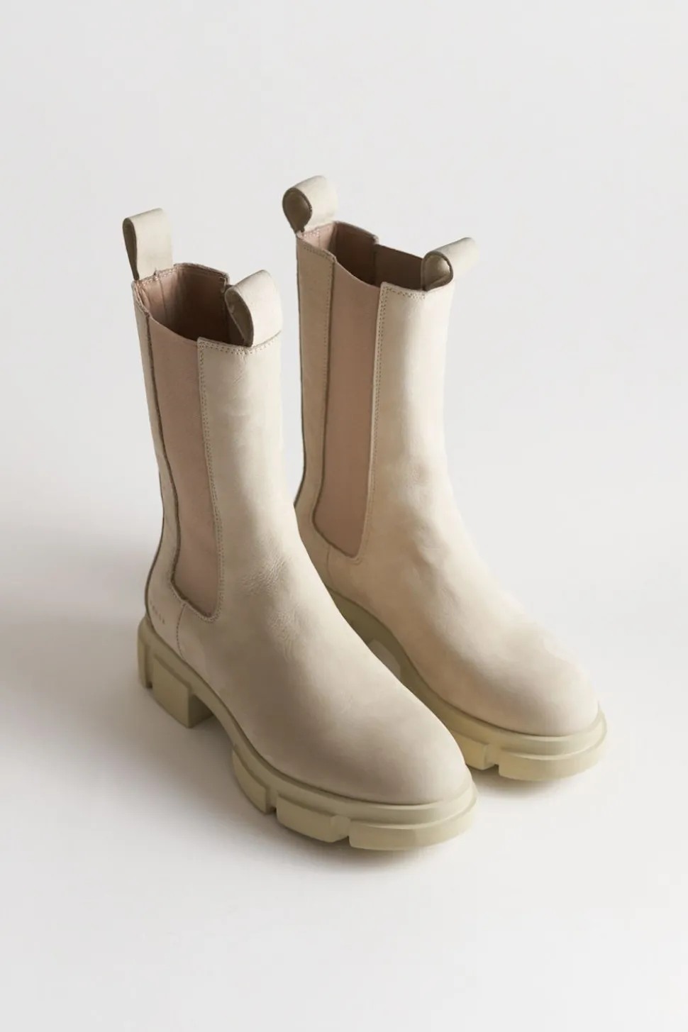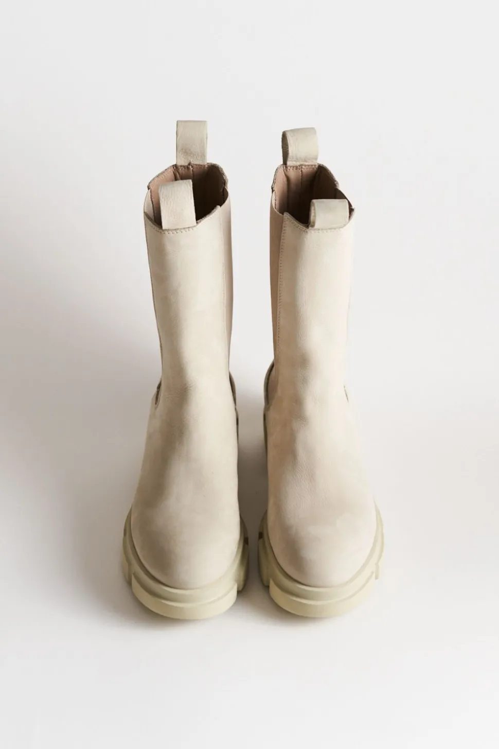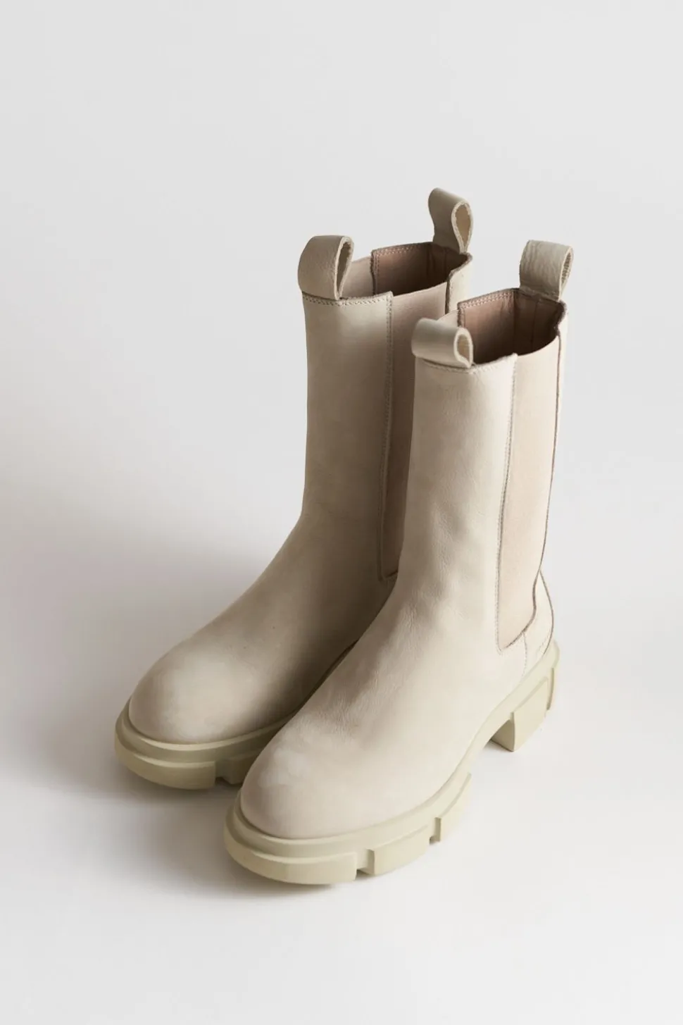 In De Natuur. Middenhoge Chelsea Boots Gemaakt Van Zacht Nubuckleer. Langwerpig Chelsea-Silhouet. Ronde Dop. Elastische Inzetstukken. Twee Treklussen Op De Schacht. Goudkleurig Logo Aan De Buitenkant. Onze Iconische Chelsea-Laarzen In Nieuwe Tinten.Onze Schoenen Zijn Ontworpen In Kopenhagen En Gemaakt In Europa. Het Leer Is Afkomstig Van Geselecteerde, Door Een Familie Gerunde Fabrieken In Italië.