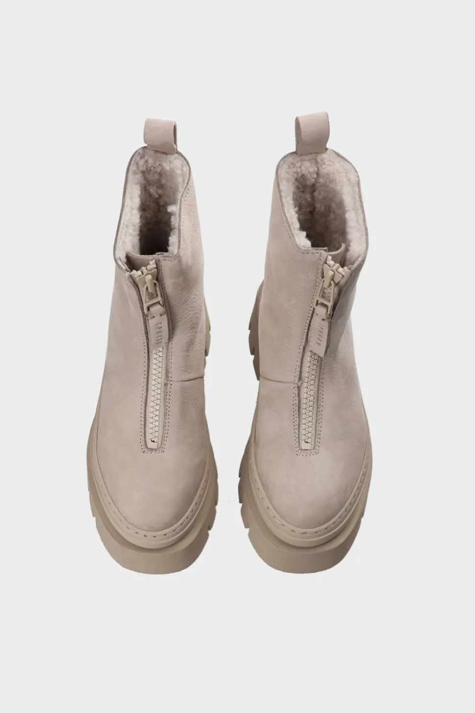 In Greige. Enkellaarzen Met Ritssluiting Van Nubuckleer Met Vegan Teddyvoering. Enkelhoog Silhouet. Ronde Dop. Ritssluiting Aan De Voorkant. Trek De Lus Aan De Schacht. Subtiele Branding Aan De Buitenkant. Een Warme En Relaxte Stijl Voor Koele Herfstdagen.Onze Schoenen Zijn Ontworpen In Kopenhagen En Gemaakt In Europa. Het Leer Komt Uit Geselecteerde, Door Een Familie Gerunde Fabrieken In Italië.