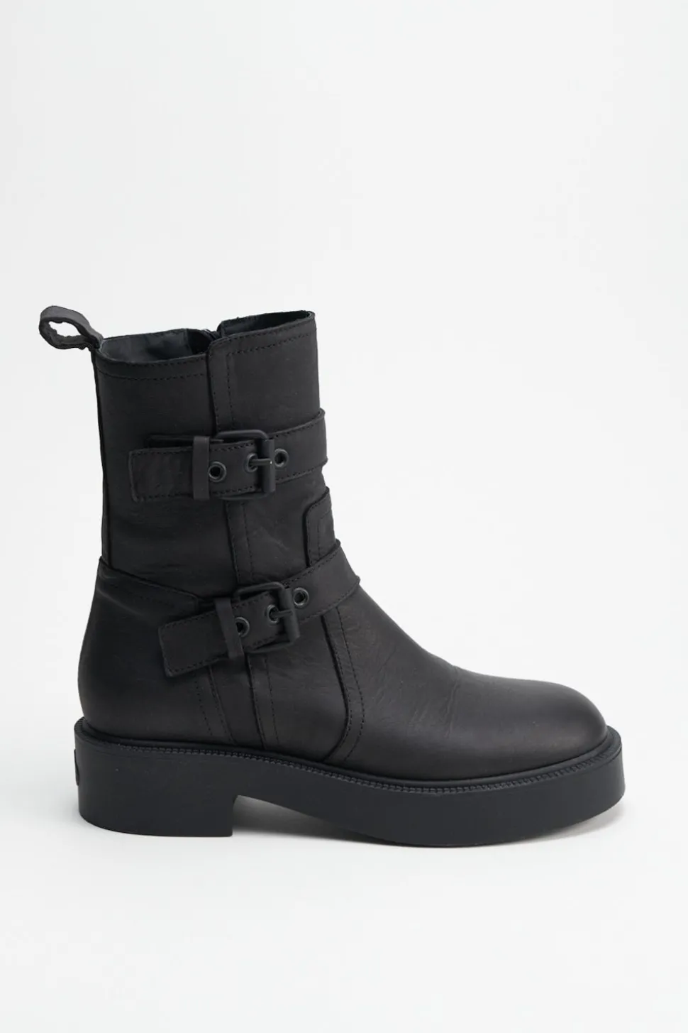 In Het Zwart. Halfhoge Laarzen Gemaakt Van Gewassen Leer Met Een Matte Afwerking. Minimalistisch Silhouet Met Een Ronde Dop. Met Contrasterende Elementen, Geborduurde Details En Twee Verstelbare Gespen. Rits Aan De Binnenkant. Trek De Lus Aan De Schacht. Tonale Hardware. Een Minimalistische Stijl Met Opvallende Details.Onze Schoenen Zijn Ontworpen In Kopenhagen En Gemaakt In Europa. Het Leer Komt Uit Geselecteerde, Door Een Familie Gerunde Fabrieken In Italië.