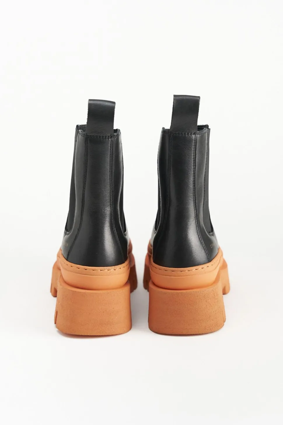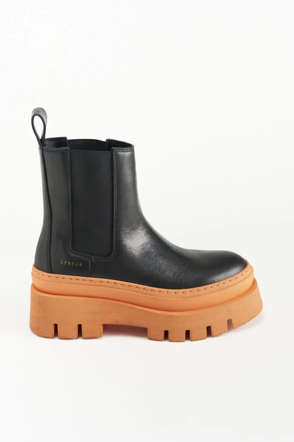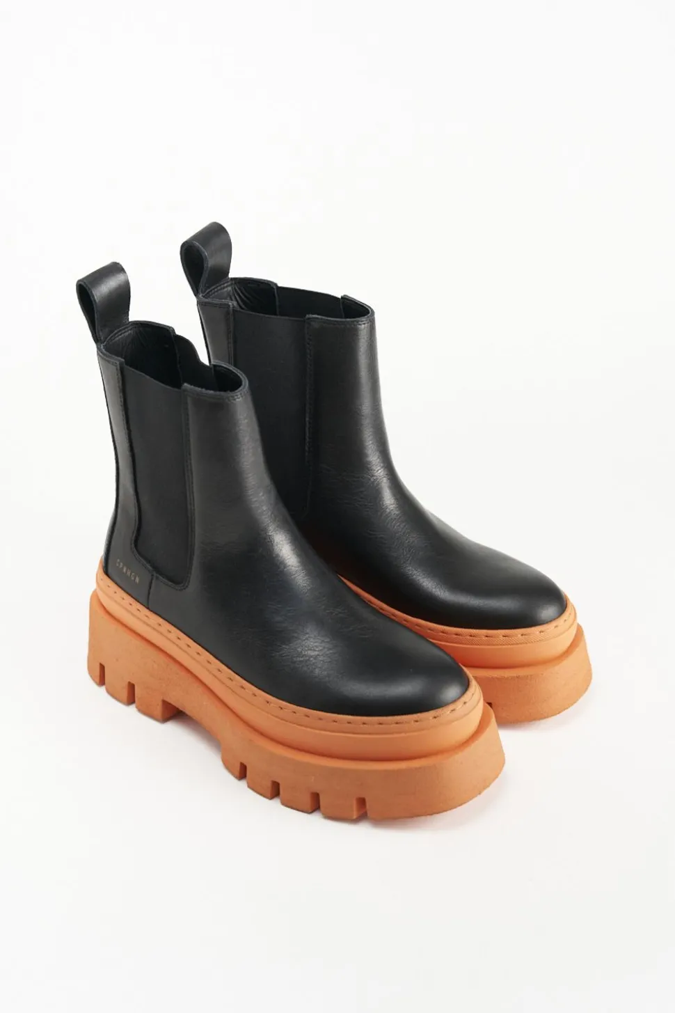 In Zwart En Oranje. Chelsealaarzen Gemaakt Van Glad Leer. Enkelhoog Silhouet Met Een Ronde Neus. Elastische Inzetstukken. Trek De Lus Aan De Schacht. Goudkleurig Logo Aan De Buitenkant. Expressieve Platformzolen Maken Deze Stijl Tot Een Blikvanger.Onze Schoenen Zijn Ontworpen In Kopenhagen En Vervaardigd In Europa. Het Leer Komt Uit Geselecteerde Familiebedrijven In Italië.