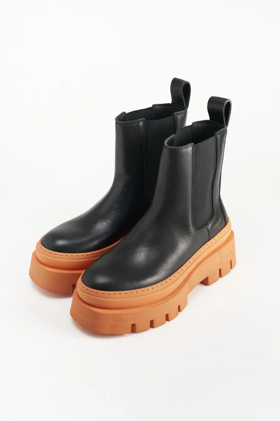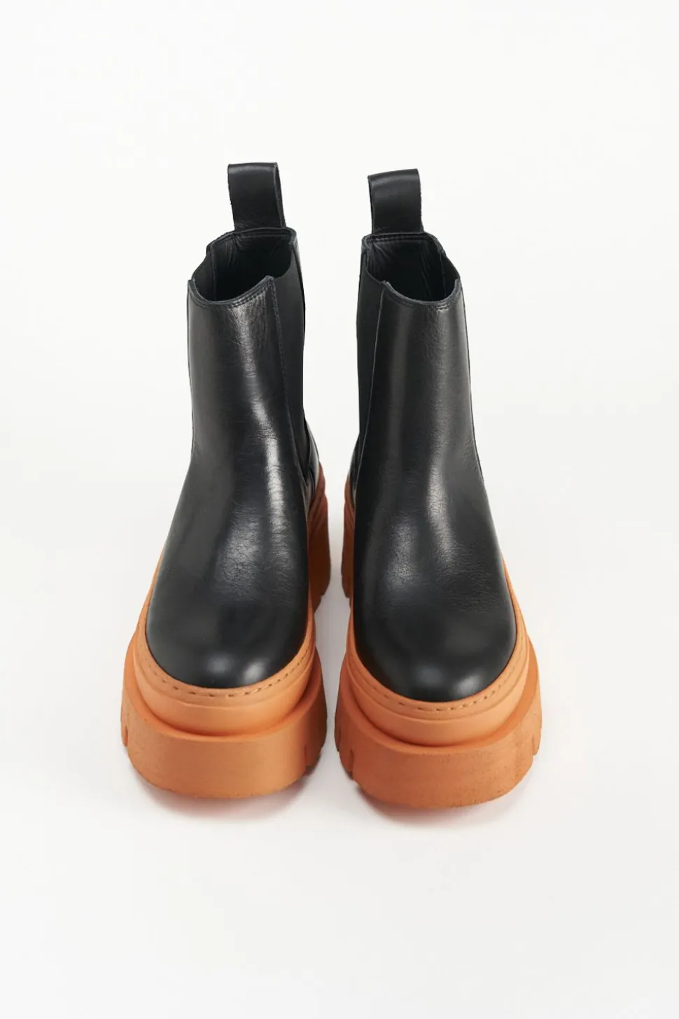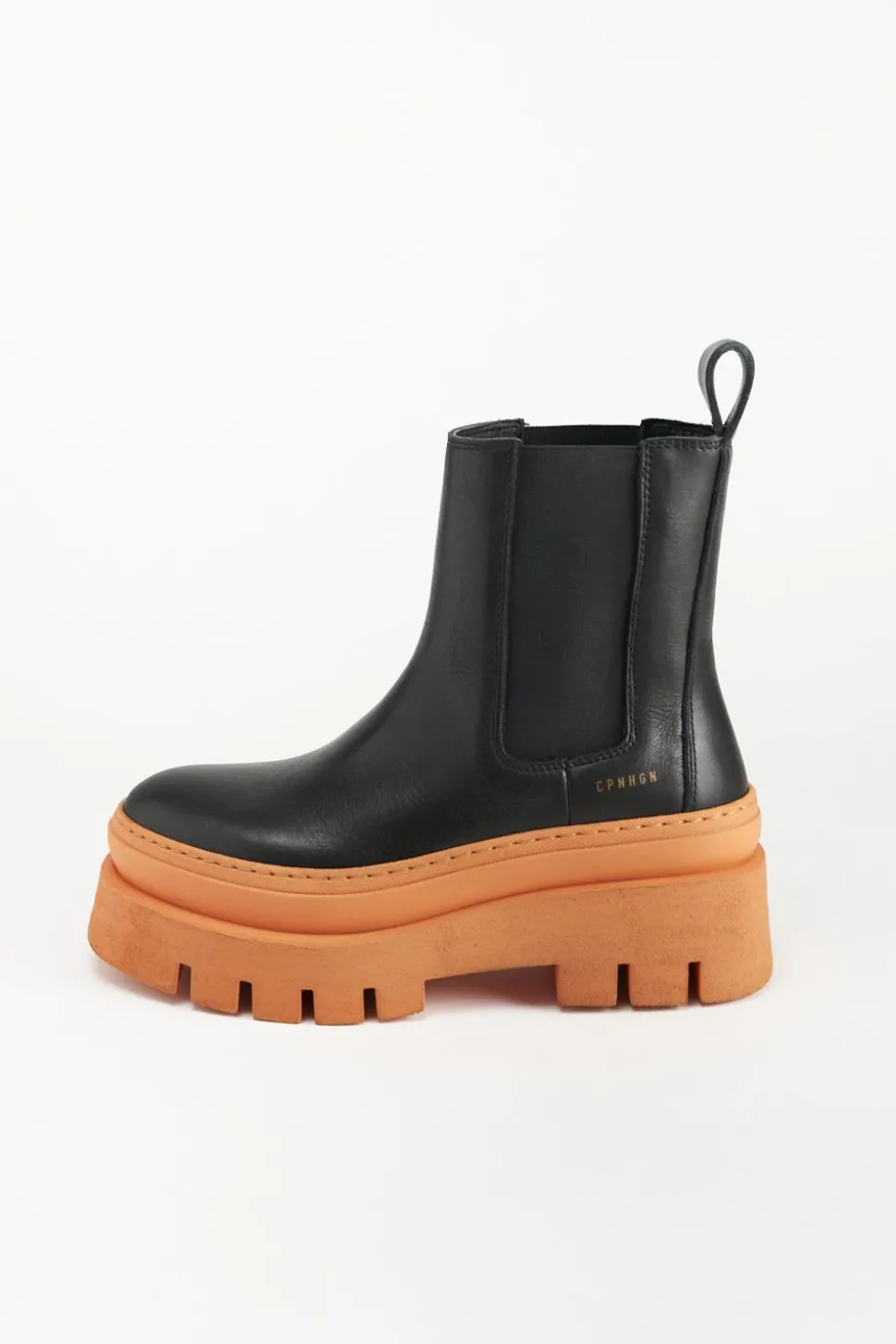 In Zwart En Oranje. Chelsealaarzen Gemaakt Van Glad Leer. Enkelhoog Silhouet Met Een Ronde Neus. Elastische Inzetstukken. Trek De Lus Aan De Schacht. Goudkleurig Logo Aan De Buitenkant. Expressieve Platformzolen Maken Deze Stijl Tot Een Blikvanger.Onze Schoenen Zijn Ontworpen In Kopenhagen En Vervaardigd In Europa. Het Leer Komt Uit Geselecteerde Familiebedrijven In Italië.