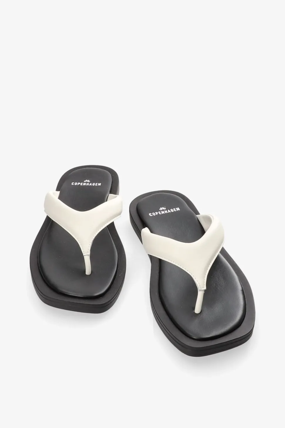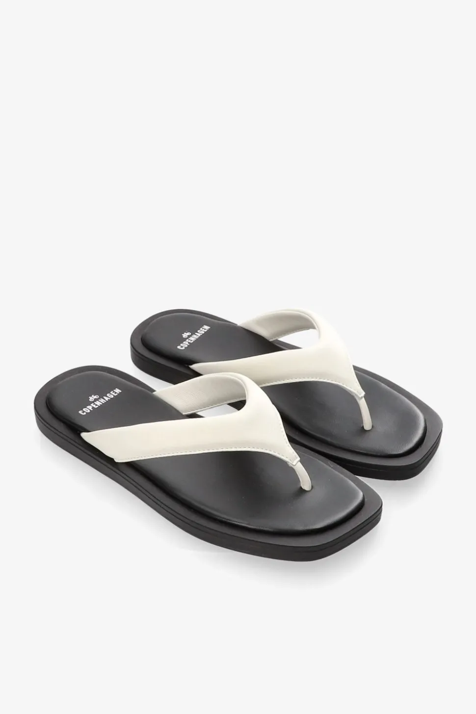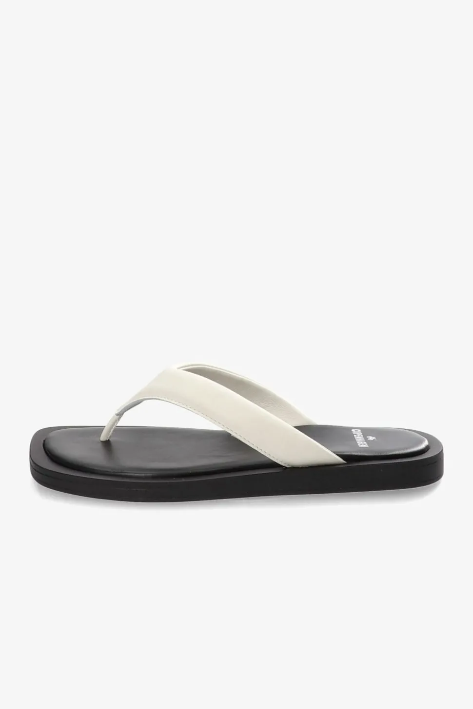 In Lichte Crème. Teensandalen Van Zacht Nappaleer. Slank Silhouet. Zachte Teenpaal. Binnenzool Met Logo. Open, Vierkante Neus. Platte Zool. Monochrome Sandalen Met Een Elegant, Minimalistisch Design.Onze Schoenen Zijn Ontworpen In Kopenhagen En Gemaakt In Europa. Het Leer Is Afkomstig Van Geselecteerde, Door Een Familie Gerunde Fabrieken In Italië.