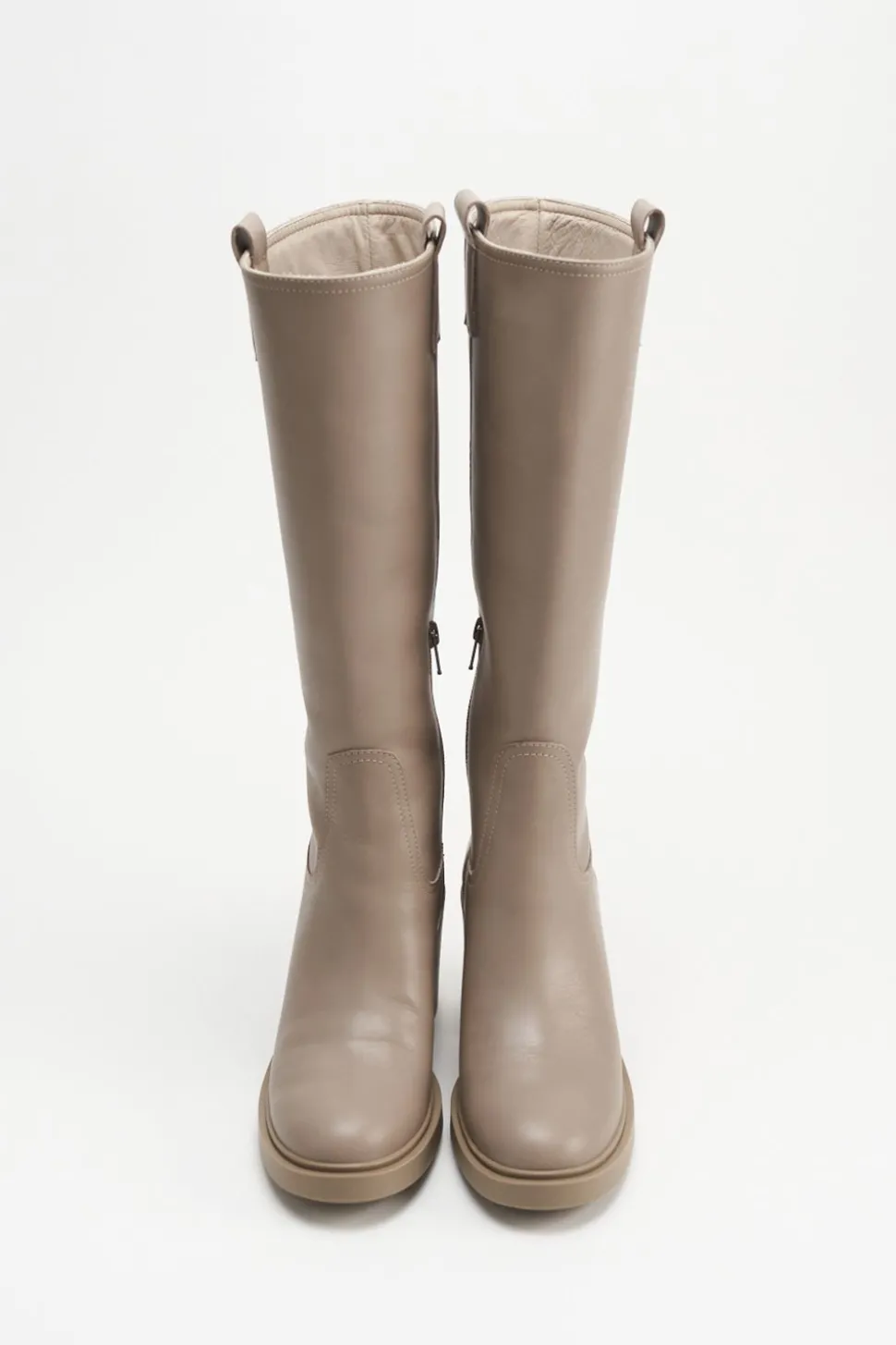 In Fango. Hoge Laarzen Gemaakt Van Glad Leer. Silhouet Geïnspireerd Op Rijlaarzen. Met Geborduurde Details En Een Ritssluiting Onderaan Aan De Binnenzijde. Trek Lussen Aan De Schacht. Een Expressieve Stijl Die Een Elegante Indruk Achterlaat.Onze Schoenen Zijn Ontworpen In Kopenhagen En Vervaardigd In Europa. Het Leer Komt Uit Geselecteerde, Door Een Familie Gerunde Fabrieken In Italië.